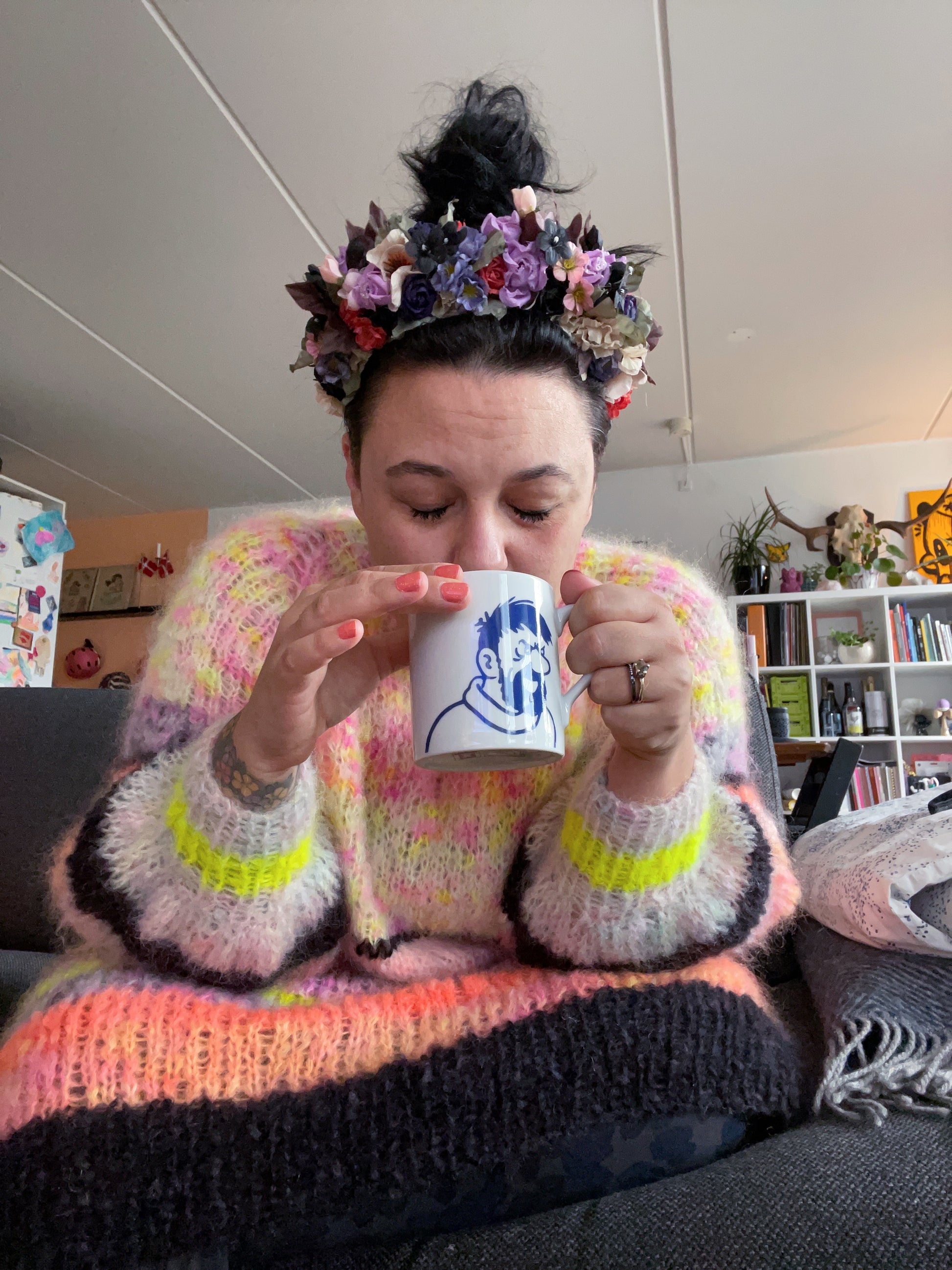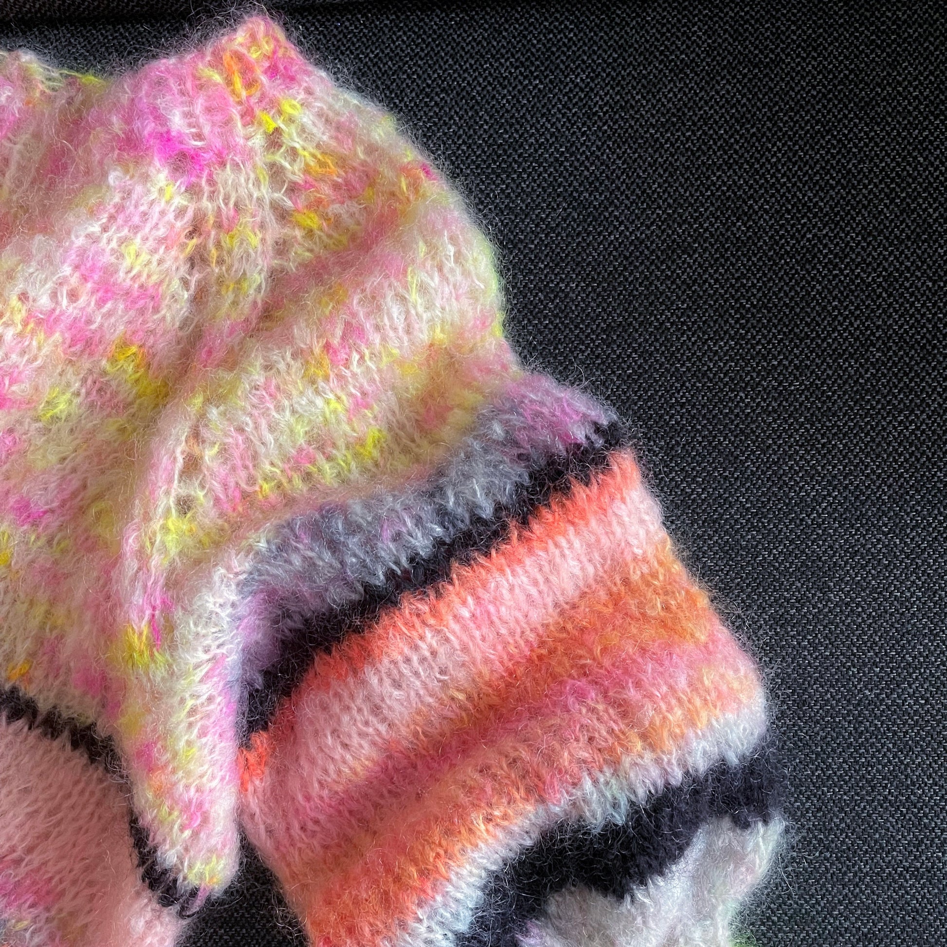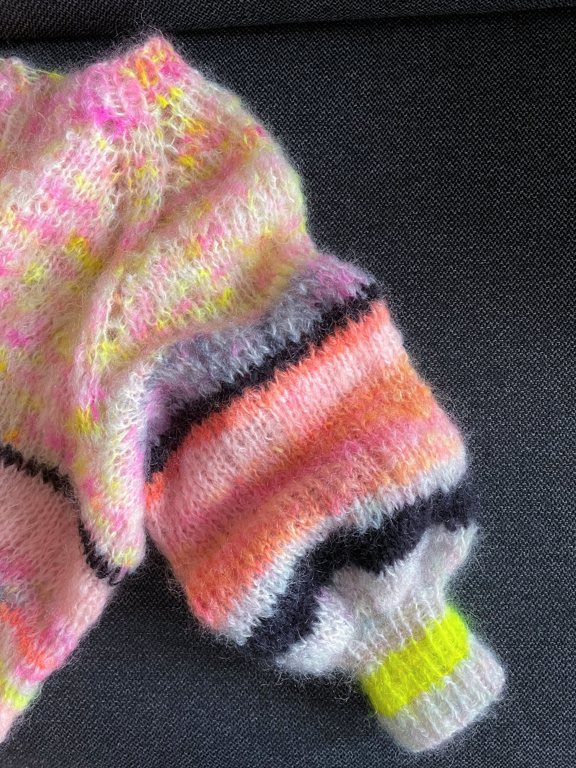 Flashdance Dress er en oversized model med et luftigt maskebillede. Den strikkes oppefra og ned med kun 1 tråd Chunky Mohair eller lign. på p 8 mm. Nakken forhøjes ved hjælp af vendepinde (German short rows), samtidig med at du starter på dine udtagninger. Når alle udtagningerne er strikket, sættes ærmemaskerne på hold, imens resten af kjolen strikkes færdig. Til sidst sættes ærmernes masker tilbage på en rundpind og strikkes færdige hver for sig.