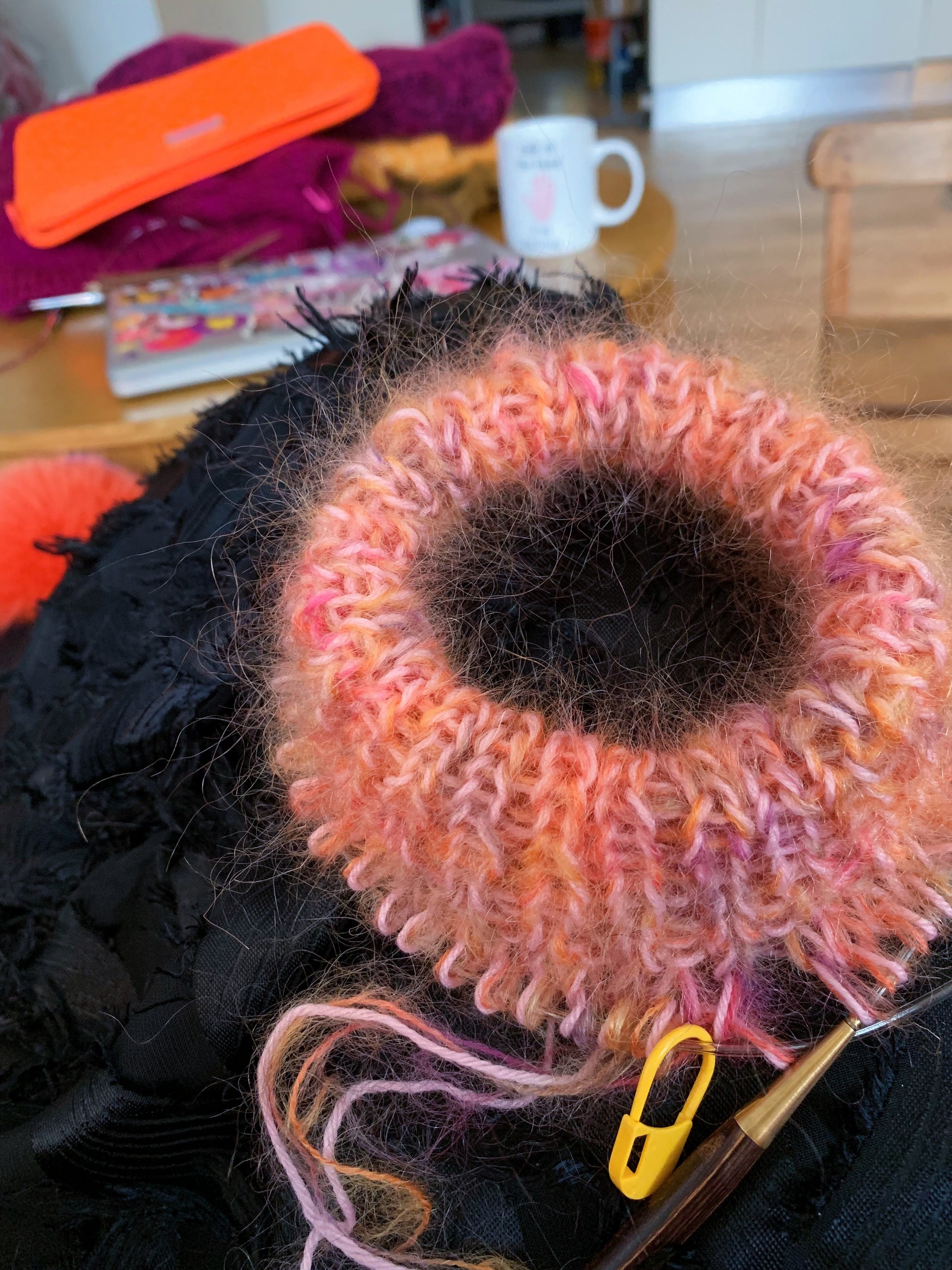 Fuzzypop Sweater Junior er en let oversize strik med dobbelt halskant, popcorn & ballonærmer, der strikkes oppefra og ned ved at lave raglanudtagninger undervejs. Den dobbelte halskant strikkes sammen, inden du går i gang med at lave dine udtagninger, så du slipper for at skulle sy den fast bagefter. Jeg har valgt at forhøje nakken for et bedre fit, ved hjælp af vendepinde. Jeg bruger metoden German shorts rows, hvor du samtidig strikker udtagninger på både ret og vrangsiden. Når alle udtagningerne er strikket, sættes ærmerne på hold, imens resten af kroppen strikkes færdig. Til slut sættes ærmemaskerne tilbage på en rundpind og strikkes færdige hver for sig. Popcornene strikkes efter et nemt system, hvor du selv har indflydelse på hvor mange eller hvor få popcorn, din strik skal have. Som du kan se er versionen jeg har strikket lang. Denne opskrift indeholder nemlig både en sweater og en kjole version.