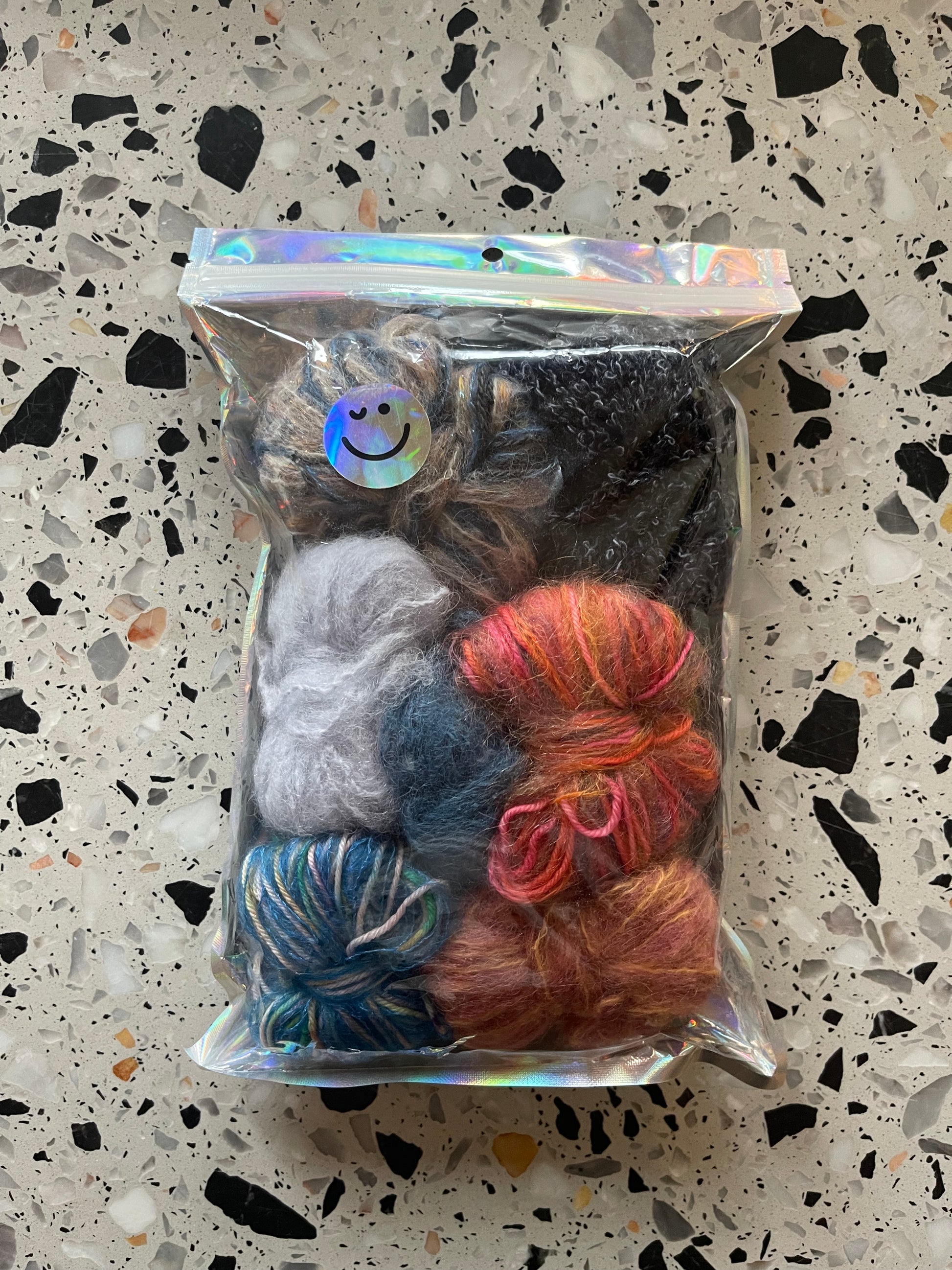 Disse poser med små restedunter, er perfekte til at strikke scrunchies eller andre små resteprojekter. Jeg har ud fra et farvetema, sammensat og rullet små lækre dunter bestående af 1, 2 eller 3 tråde garn. De forskellige garner, er af kvaliteter som Mohair og Merino i forskellige tykkelser og farver. Nogle er tilsat glimmer, dutter eller pels, også kaldet effektgarn.