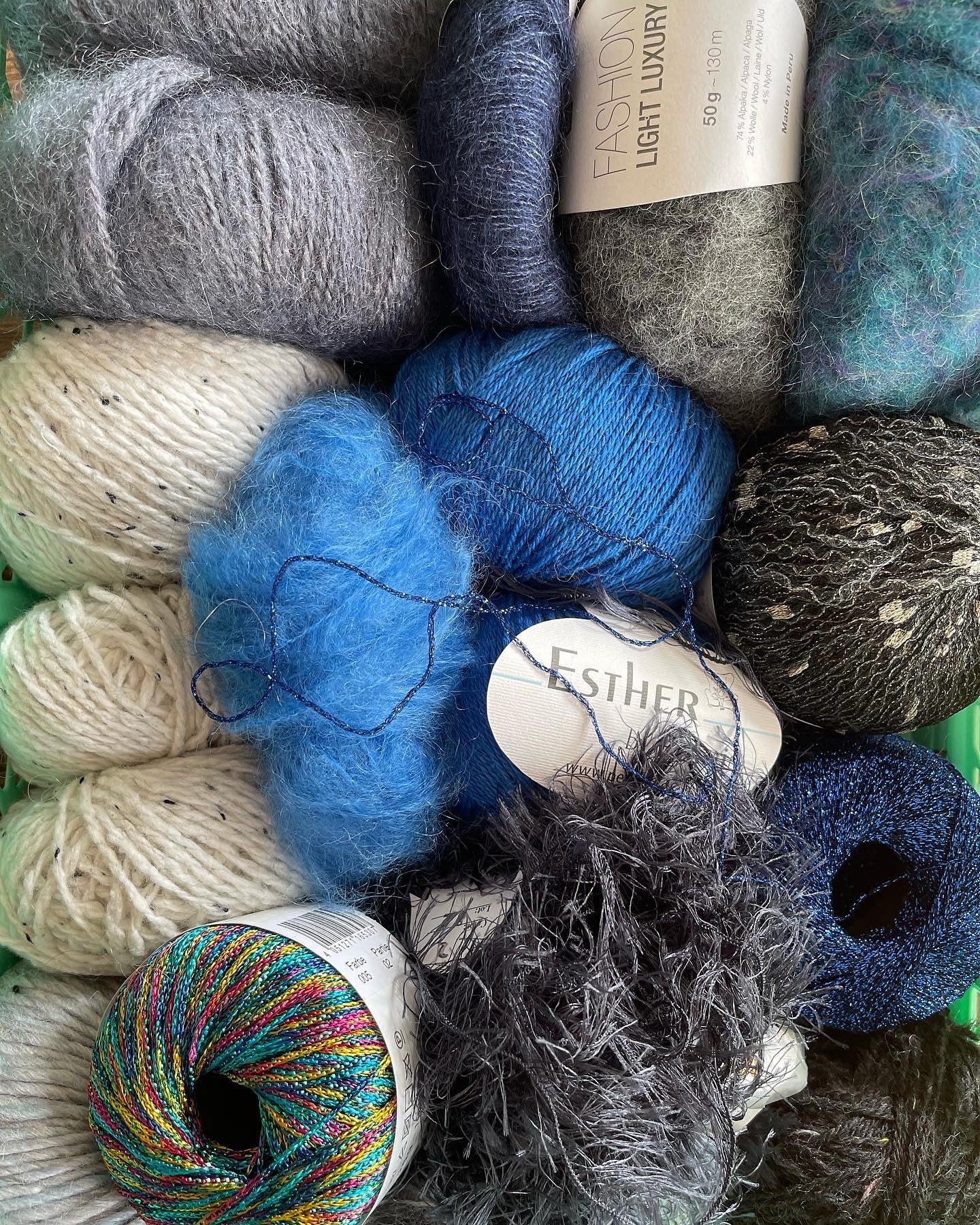 Det er jo meningen du skal strikke med dine garnrester, og det handler derfor om at prøve at finde alle mulige slags kvaliteter og sætte dem sammen på kryds og tværs. Et tip kan dog være at de garntyper der typisk strikkes på p 3-5 strikker du 2 tråde sammen. Eksempelvis mohair og merino af den ene eller den anden type. De lidt mere chunky garn typer som strikkes på p 6-9 strikkes alene. Du bruger den samme pinde str. hele vejen igennem, så alt efter hvordan du sætter garnet sammen, vil maskebilledet se forskelligt ud. Altså noget mere luftigt end andet.