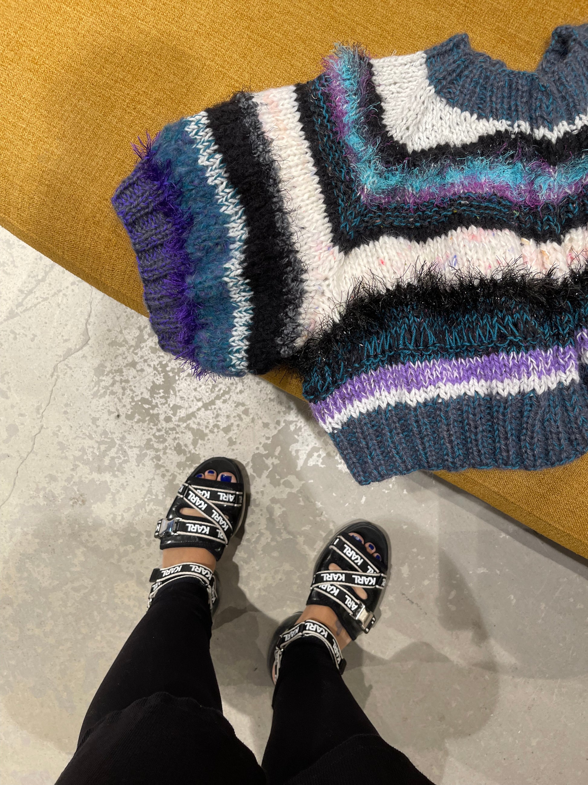 Restefætter Cardigan er ligesom sweateren en simpel klassisk oversize raglan model. Den strikkes oppefra og ned, frem og tilbage i glatstrik, og med vendpinde i starten af arbejdet for et bedre fit. Modellen kan strikkes i både en lang eller cropped udgave, med korte eller lange ærmer. Det er blot fantasien der sætter grænser for garnkombinationer og udtrykket i denne.